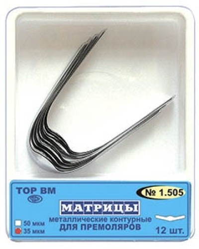 1.505 Матрицы металлические контурные, центр. выступ, для премоляров (12шт), ТОР ВМ / Россия
