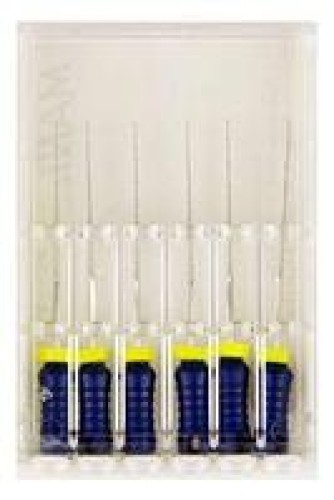 Рукоятка К-файлов № 30 Mani, сделанная из прочного пластика, легко удерживается, обеспечивая точную работу. Спиралевидный стержень позволяет снимать тонкие дентиновые слои, выводя опилки наружу.