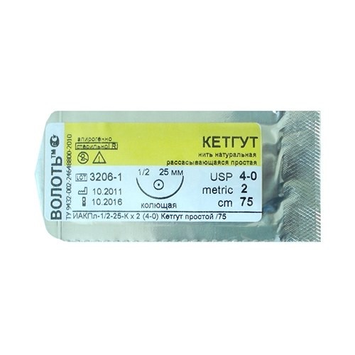 Шовный материал Кетгут 3/0 Линтекс используется в стоматологической хирургии для накладывания лигатур или швов. Он рассасывается через 90 суток после накладывания, поэтому не требует снятия швов.